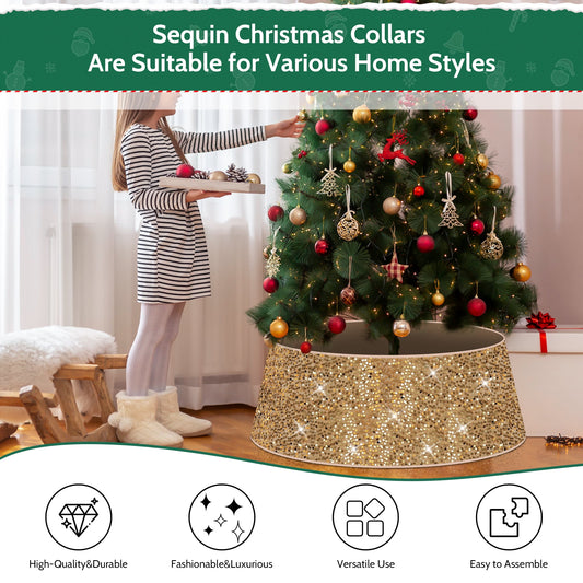 34" Sequin Christmas Tree Collar,Tree Bottom Base,Foldable Bottom Decoration for Christmas Holiday,Gold