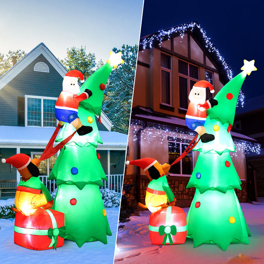 7.2ft Large Outdoor Christmas Inflatable Tree with Santa Claus and Dog,Built-in LED Lights,Fun Blow Up Xmas Decor Suitable for Yard,Garden,Lawn