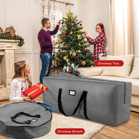 3 Pack Large Christmas Tree Storage Bag,Fits UP to 7.5 ft Artificial Trees,Christmas Wreath Garland Storage Bag,Christmas Ornament Storage Box,Reinforced Handles & Zipper,Gray