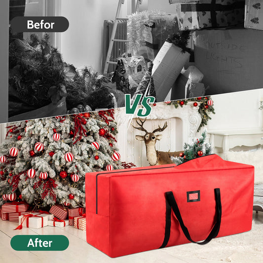 3 Pack Large Christmas Tree Storage Bag,Fits up to 7.5 ft Artificial Trees,Christmas Wreath Garland Storage Bag,Christmas Ornament Storage Box,Reinforced Handles & Zipper,Red