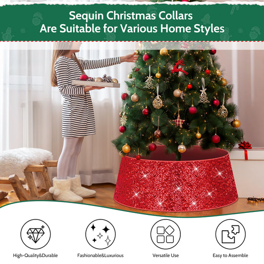 34" Sequin Christmas Tree Collar,Tree Bottom Base,Foldable Bottom Decoration for Christmas Holiday,Red