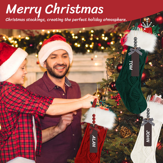 6-Pack Christmas Stockings, 18" Personalized Xmas Stockings, Large Knitted Stockings for Holiday Party Decor Burgundy, lvory, Green
