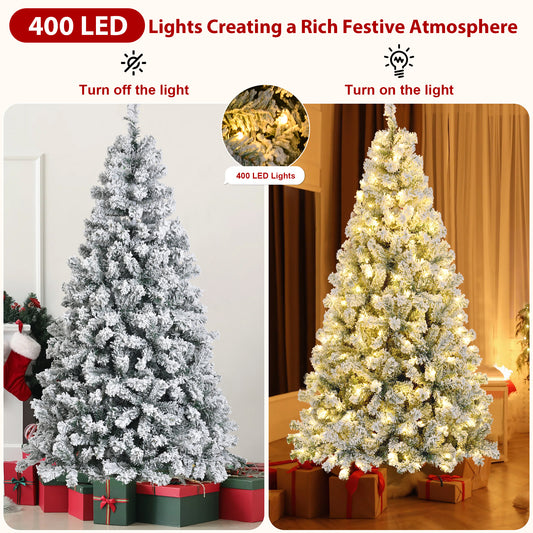 7.5ft Prelit Snow Flocked Christmas Tree,8 Modes LED Lights,Artificial Xmas Tree with Large Storage Bag