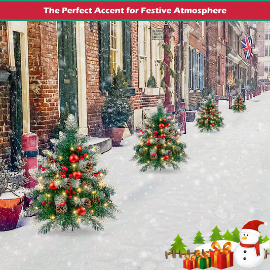2PCS Small Outdoor Christmas Trees with LED Lights,30" Artificial Xmas Decora for Porch,Yard,Pathway,Garden,PVC