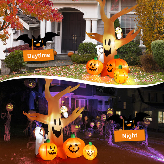 Yexmas 8FT Halloween Inflatables Dead Tree,Outdoor Halloween Decorations with Built-in LED Lights ,Halloween Blow Up Yard Decorations with Pumpkin,Ghost,and Owl