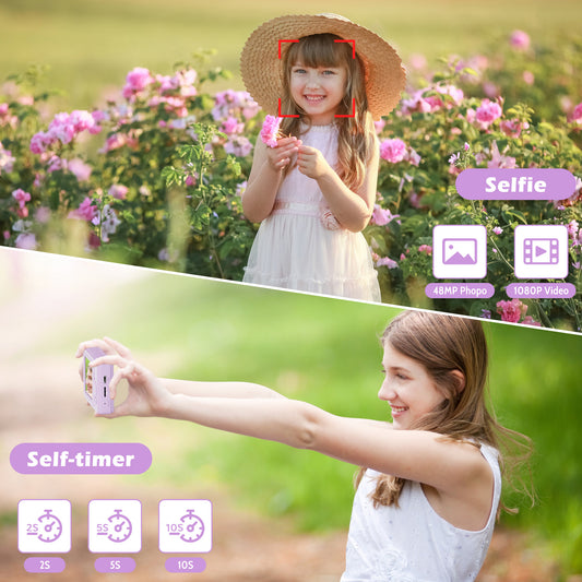 Lookfly Digital Camera,FHD 1080P Point and Shoot Kids Camera,Camera for Photography with 32GB Card ,18X Zoom Anti Shake,48MP,Compact Small Digital Camera for Boys Girls Kids,Purple